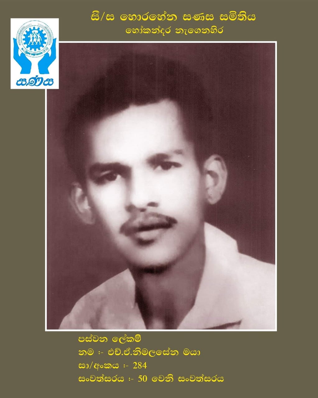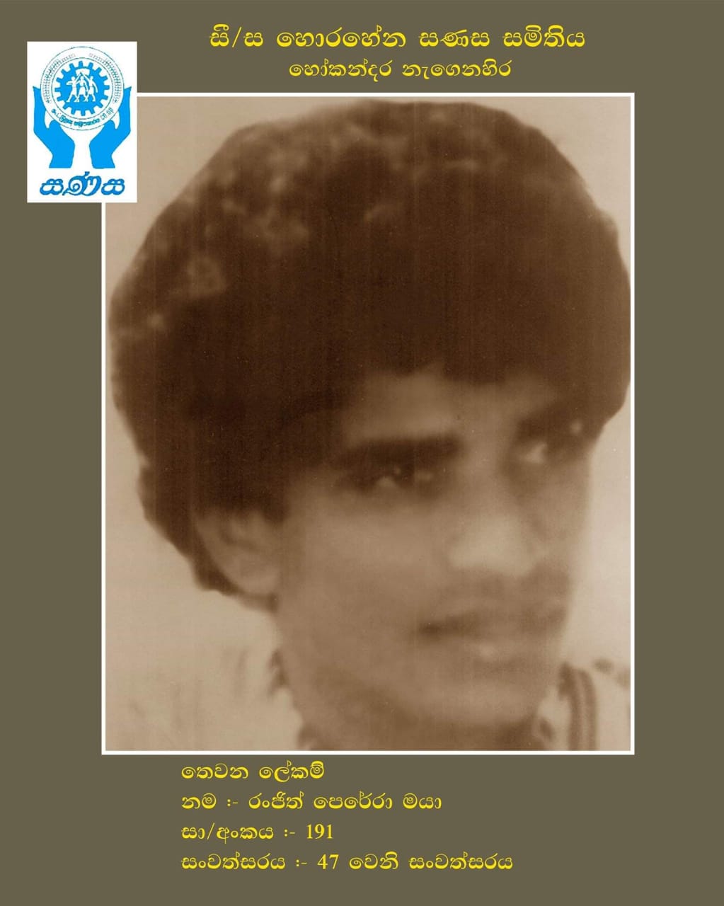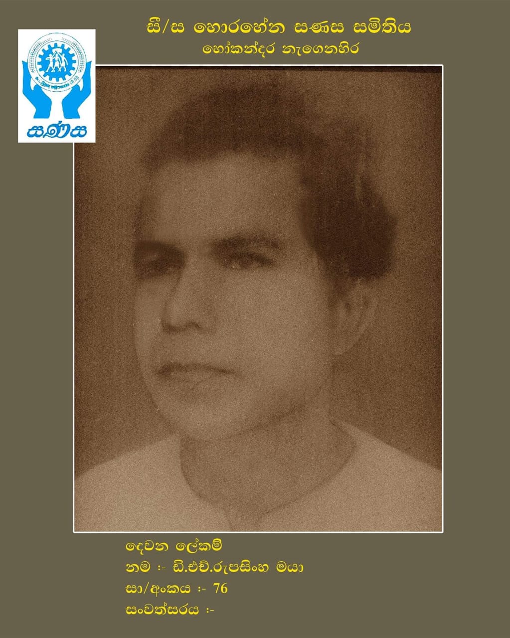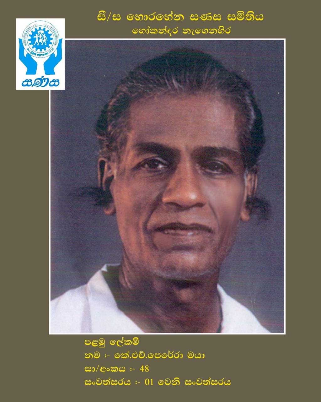 සී/ස හොරහේන සණස සමිතියේ වසර 22ක් ලේකම් තනතුර දැරූ පී.ඒ. ලයනල් පෙරේරා මහතාගෙන් ලබාගත් තොරතුරු